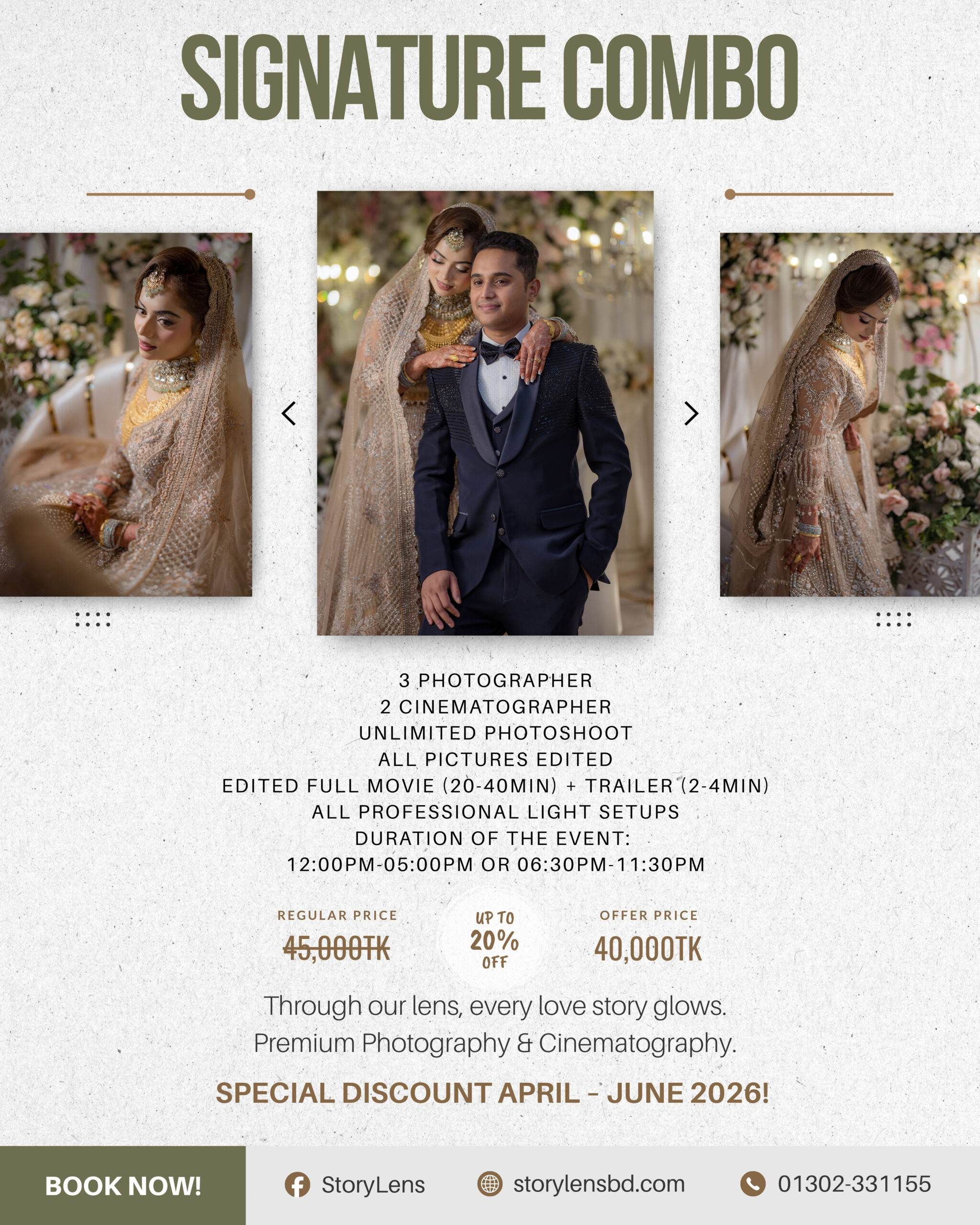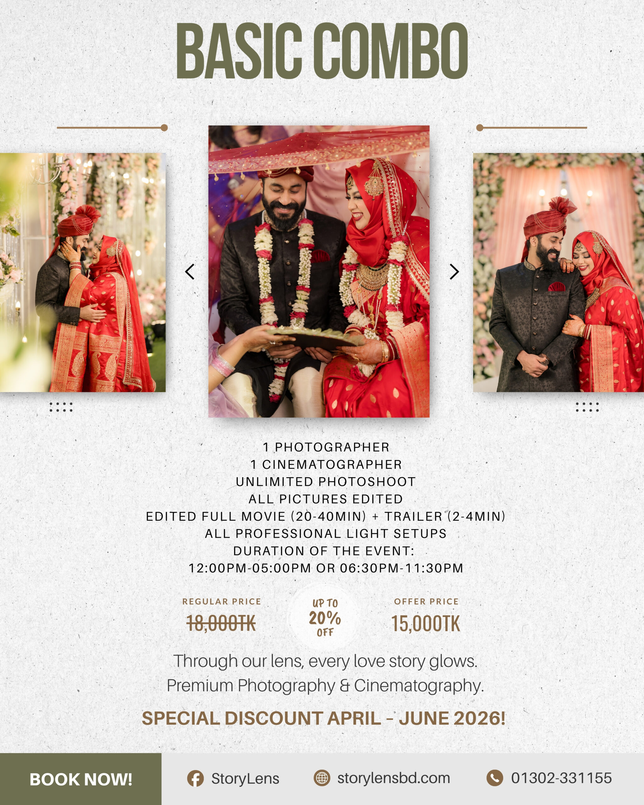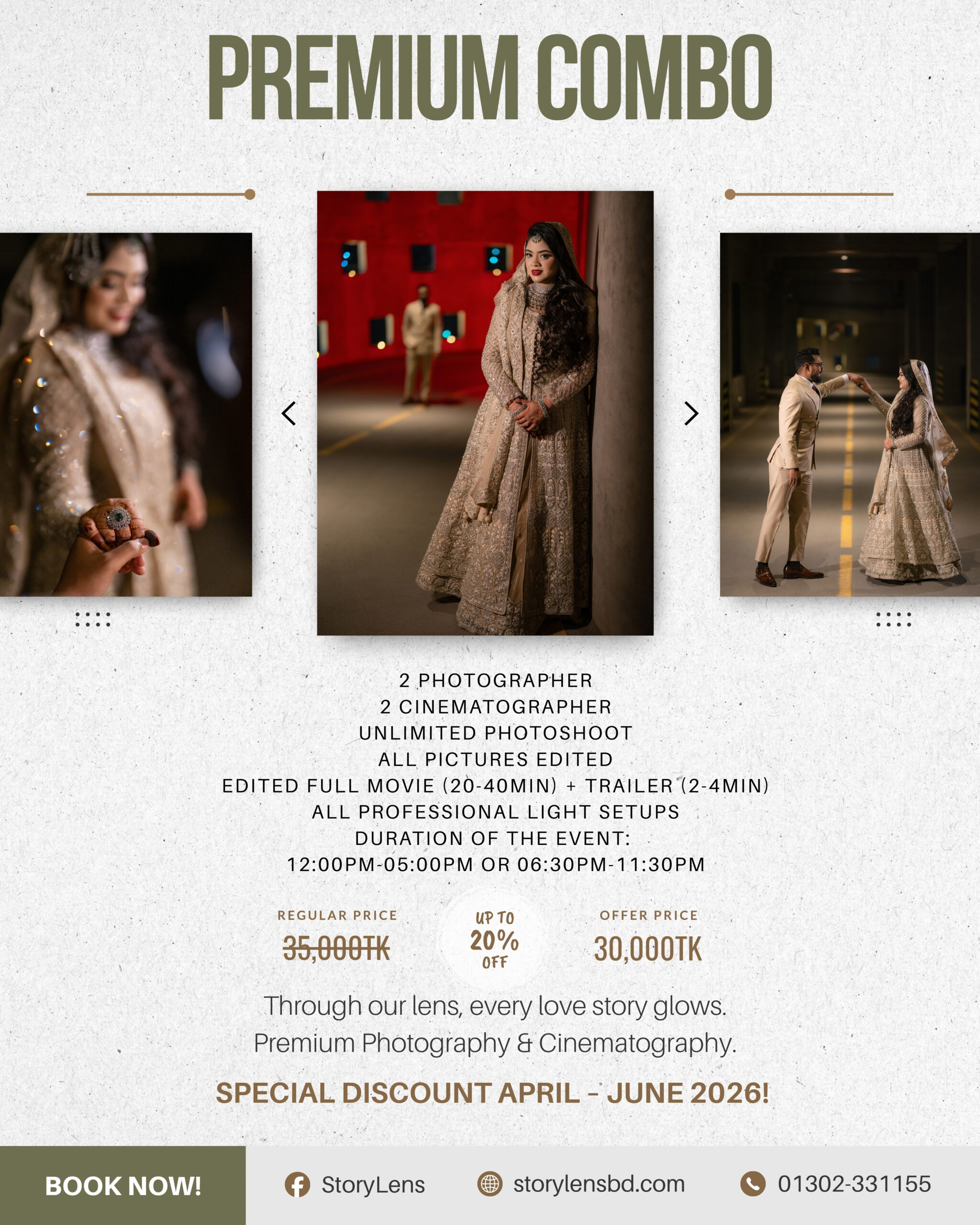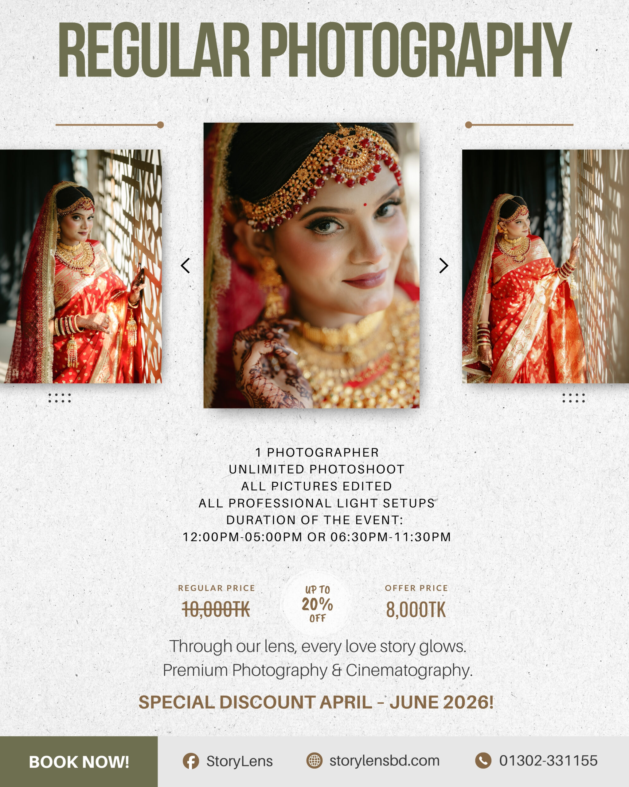 - Makeover/Pre-Shoot on the Event Day Photography – 4,000TK